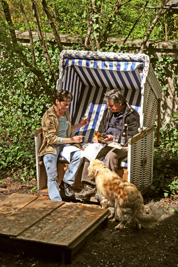 Brotzeit im Hinterhof-Strandkorb - Pause von der Braxonia im Keller