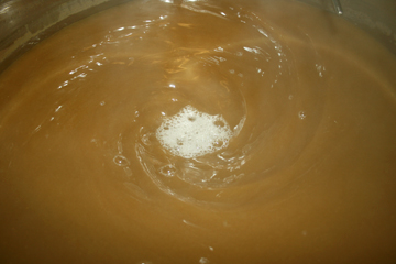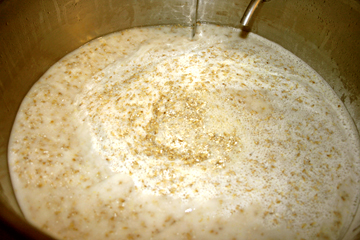die Maische sieht anfänglich nicht unbeding wie Bier aus, sondern erinnert eher an einen Griesbrei für Magenkranke
