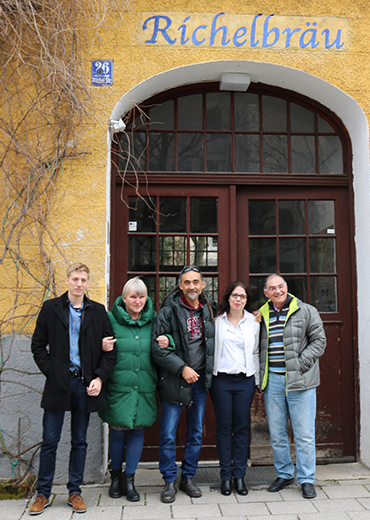 Dieter Janecek (2.v.l.); links: türkischer Bewohner Muzaffer und (2.v.l.) der Bräu.